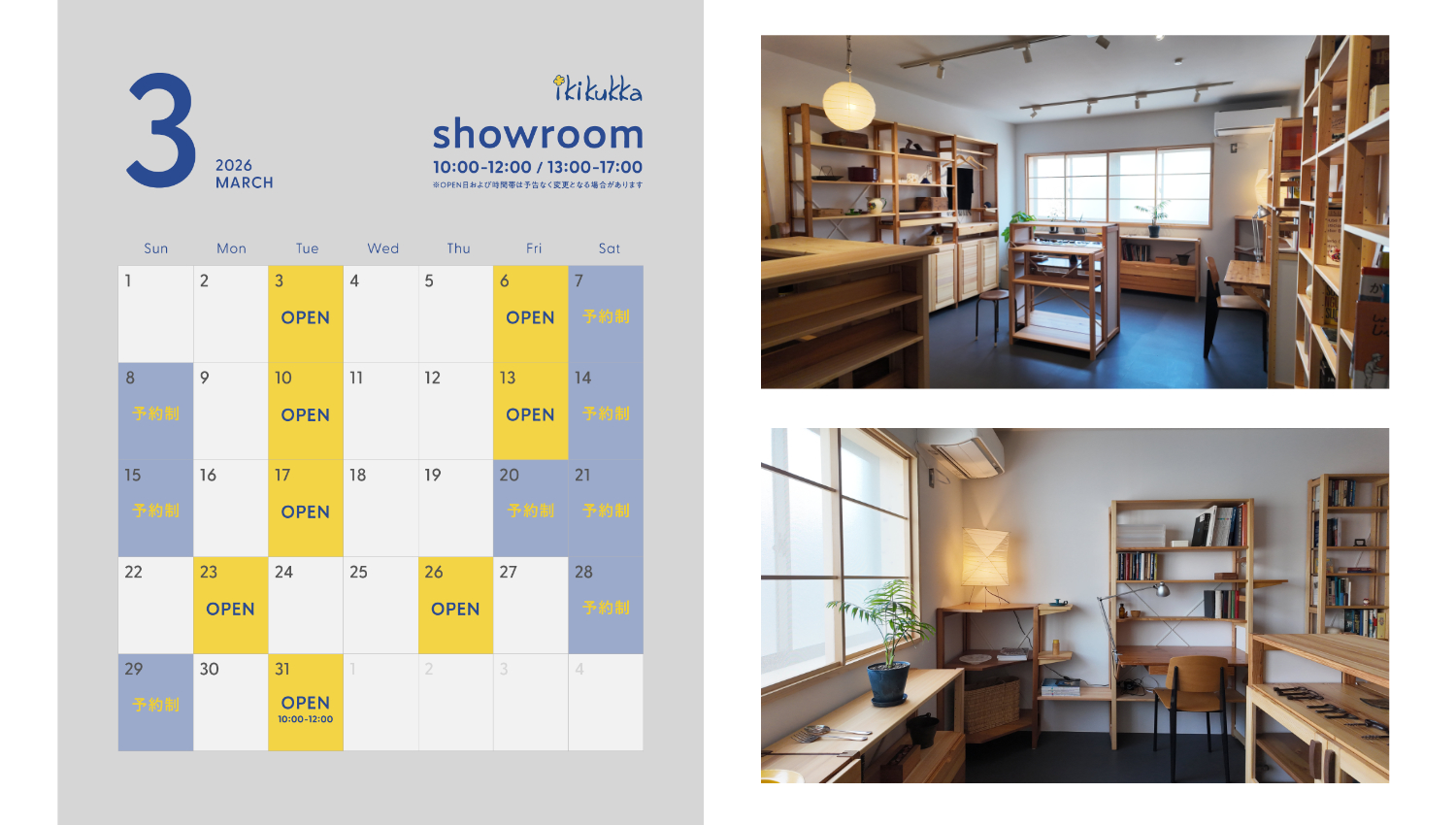 26.03.02 ショールームOPEN DAY カレンダー(3月)